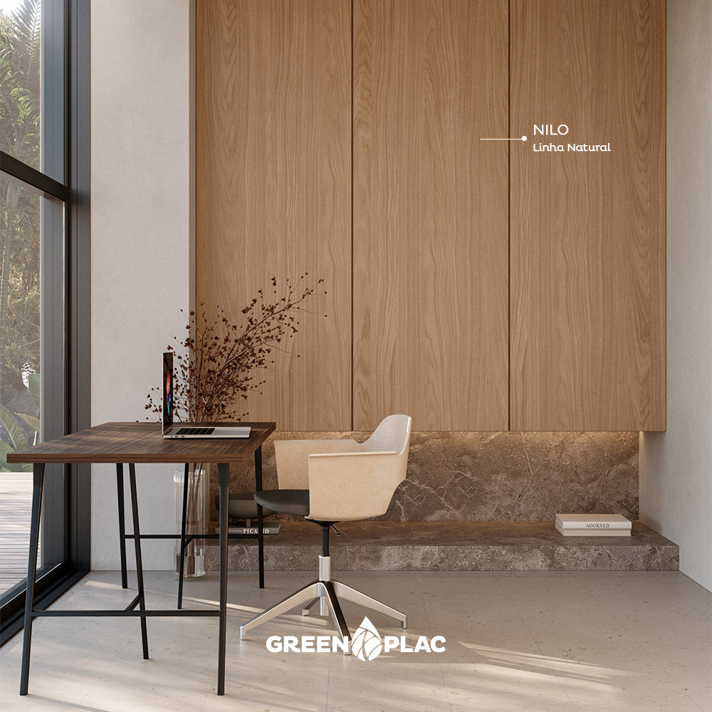 Com desenho madeirado em tonalidade média amendoada, suavemente rosada, assim como as areias do Egito, o Padrão Nilo segue novos caminhos do design italiano que já indica madeiras comerciais com traços mais limpos, linheiros e naturais.